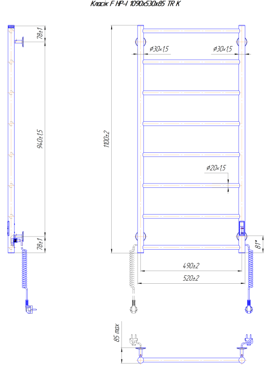 Електросушарка для рушників побутова Класік F НР-I 1090х530/75 TR K.