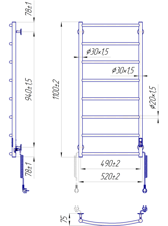 Електросушарка для рушників побутова Класік НР-І 1090х530/85 TR К.
