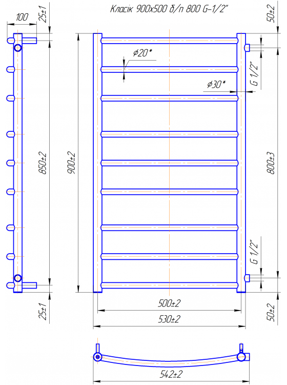 Водяна рушникосушарка Класик Б/П 1/2" 900х550 з міжцентровою відстанню для підключення 800мм, діаметр підключення G 1/2'' складається з 9 ребер. Рушникосушарка Класік Б/П 1/2" заводу-виробника Mario виготовлена з нержавіючої сталі АІSI 304. Є можливість ⟳перевернуть на 180° ; дзеркально відобразивши (правосторонні і лівосторонні перемички)