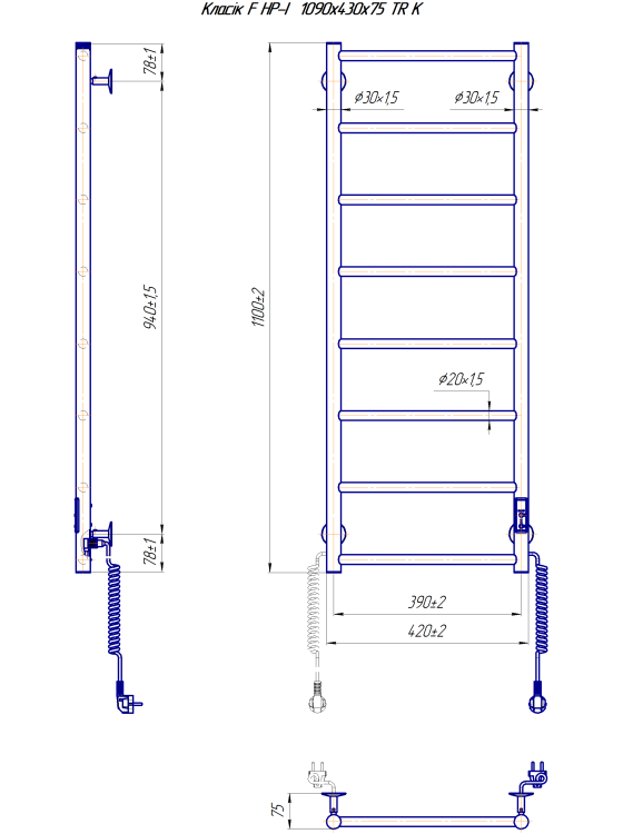 Електросушарка для рушників побутова Класік F НР-I 1090х430/75 TR K.