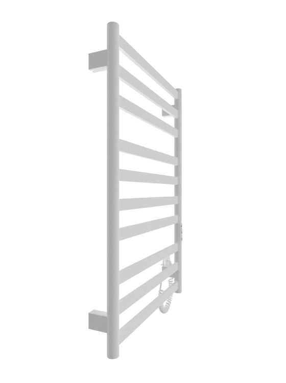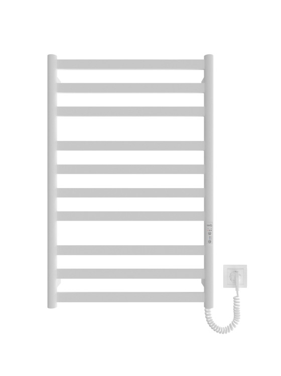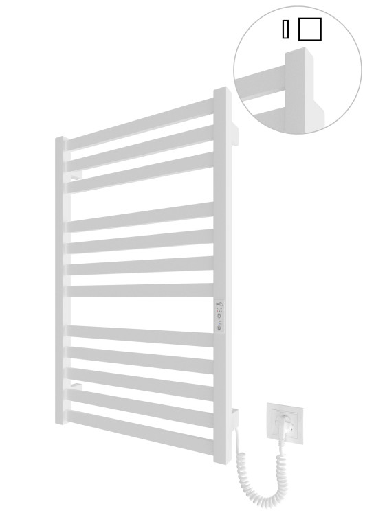 Електрична рушникосушарка HF Oxford 770х530. Працює за технологією сухого ТЕНу. Обладнана вбудованим таймер-регулятором і конектором для підключення до живлення з будь-якого боку. Оснащена комплектом для прихованого підключення. Модель має 12 ребр з прямокутногої труби та стійки з квадратної труби. Матеріал - чорна сталь з антикорозійною обробкою(фосфотація). Варіанти покриття: чорний мат або білий мат. Температурні режими таймер-регулятора: 40°С, 45°С, 50°С. Час роботи: 3, 6 годин або постійний нагрів. Потужність 130 Вт. Гарантія - 3 роки.