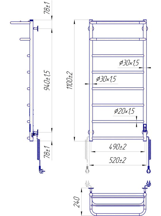 Електросушарка для рушників побутова Hotel-І 1090х530/240 TR К.