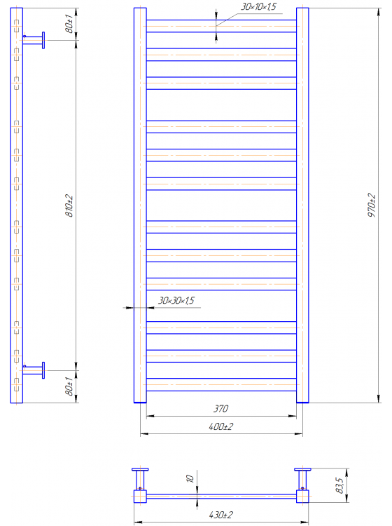 Рушникосушарка INOX Чикаго 970х430/400. Розміри: висота - 970 мм, ширина - 430 мм, глибина 80 мм, міжцентрова відстань для підключення - 400 мм, діаметр підключення G1/2''. Варіанти підключення: нижнє, діагональне та бічне. Кількість ребер - 12. Виготовлена з полірованої нержавіючої сталі без хромування. Для всесезонної роботи водяну модель можна переобладнати на комбіновану, встановивши ТЕН, рекомендована потужність 600 Вт. Сумісні аксесуари: поворотні полиці та навісні гачки для збільшення функціональності. Рекомендовано підключати рушникосушарку за допомогою кранів Маріо. Гарантія - 50 років в закритій системі опалення, 5 років у централізованій.