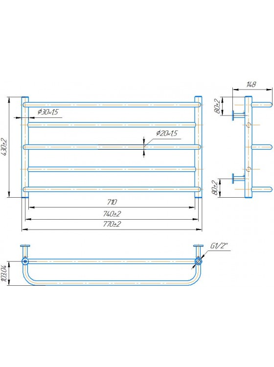 Рушникосушарка INOX Люкс Сіті 430х770/740. Розміри: висота - 430 мм, ширина - 770 мм, глибина 160 мм, міжцентрова відстань для підключення - 740 мм, діаметр підключення G1/2''. Варіанти підключення: нижнє, діагональне та бічне. Кількість ребер - 5. Виготовлена з полірованої нержавіючої сталі без хромування. Для всесезонної роботи водяну модель можна переобладнати на комбіновану, встановивши ТЕН, рекомендована потужність 200 Вт. Сумісні аксесуари: поворотні полиці та навісні гачки для збільшення функціональності. Рекомендовано підключати рушникосушарку за допомогою кранів Маріо. Гарантія - 50 років в закритій системі опалення, 5 років у централізованій.