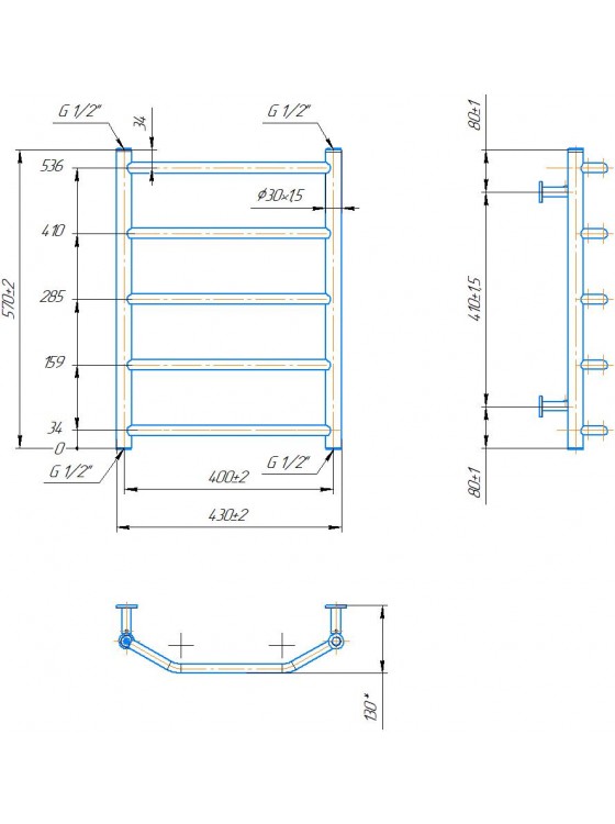 Рушникосушарка INOX Трапеція 570х430/400. Розміри: висота - 570 мм, ширина - 430 мм, глибина 130 мм, міжцентрова відстань для підключення - 400 мм, діаметр підключення G1/2''. Варіанти підключення: нижнє, діагональне та бічне. Кількість ребер - 5. Виготовлена з полірованої нержавіючої сталі без хромування. Для всесезонної роботи водяну модель можна переобладнати на комбіновану, встановивши ТЕН, рекомендована потужність 120 Вт. Сумісні аксесуари: поворотні полиці та навісні гачки для збільшення функціональності. Рекомендовано підключати рушникосушарку за допомогою кранів Маріо. Гарантія - 50 років в закритій системі опалення, 5 років у централізованій.