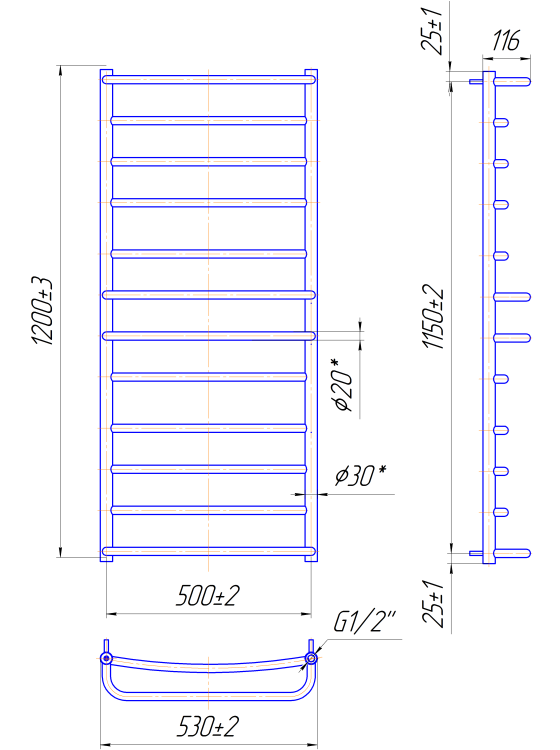 Рушникосушарка "Маріо" Люкс 1200х530/500.