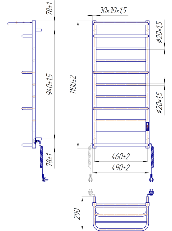 Електросушарка для рушників побутова Люксор-I 1100х500/290 TR К.