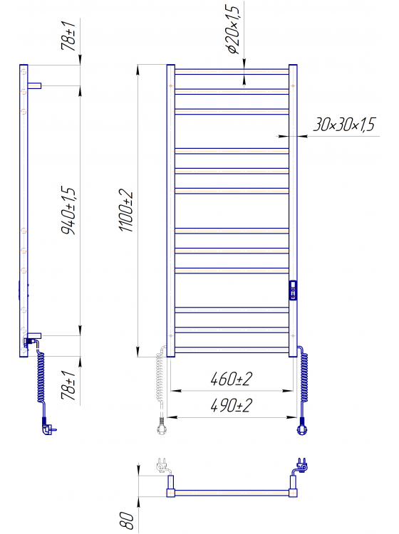 Електросушарка для рушників побутова Преміум Класік-I 1100х500/80 TR К.