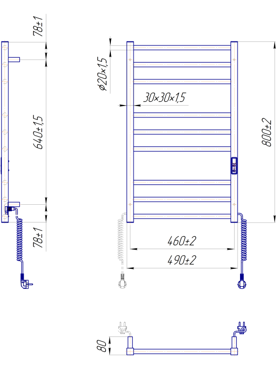 Електросушарка для рушників побутова Преміум Класік-I 800х500/80 TR К.