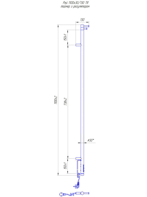 Електросушарка для рушників побутова Рей-I 1100x30/130 TR. Обладнана таймер-регулятором. Сумісна з комплектом прихованого підключення. Має стояк круглої форми. Виготовлена з полірованої нержавіючої сталі без хромування. Варіанти покриття: полірована, сатин, чорний мат. Температурні режими таймер-регулятора: 40°С, 45°С, 50°С. Варіанти часу роботи: 3, 6 годин та постійний нагрів. Потужність 30 Вт. Гарантія - 20 років на корпус / 5 років на електричну частину.