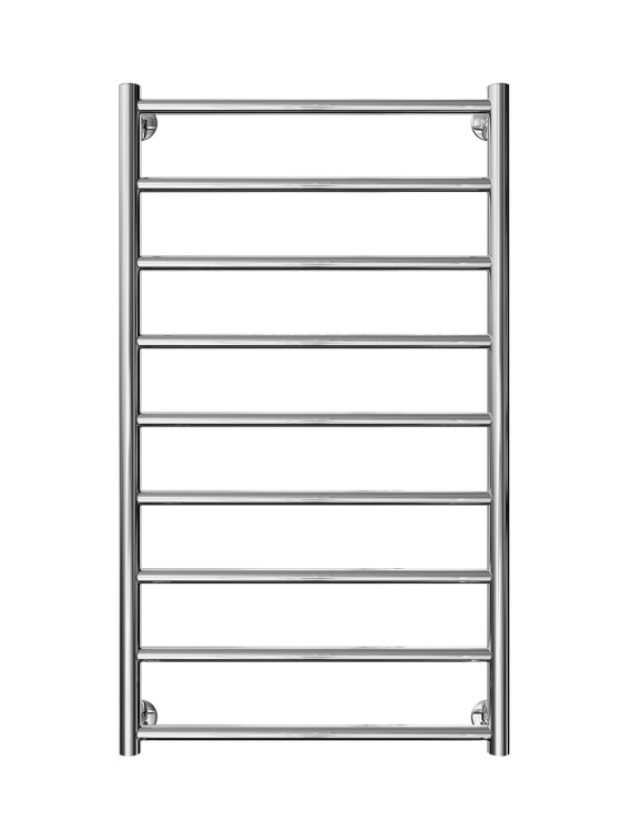Водяной полотенцесушитель "Марио" Класік F 900х530/500. Размеры: высота – 900 мм, ширина – 530 мм, глубина – 80 мм, межосевое расстояние для подключения – 500 мм, диаметр подключения G1/2'. Количество перекладин – 9, вертикальные стойки изготовлены из круглой трубы. Изготовлен из полированной нержавеющей стали без хромирования. Для круглогодичной работы водяную модель можно переоборудовать в комбинированную, установив ТЭН. Рекомендуемая мощность — 200 Вт. Совместимые аксессуары: поворотные полки и навесные крючки для расширения функциональности. Рекомендуется подключать полотенцесушитель с использованием кранов Mario. Гарантия — 50 лет в закрытой системе отопления, 5 лет — в централизованной.