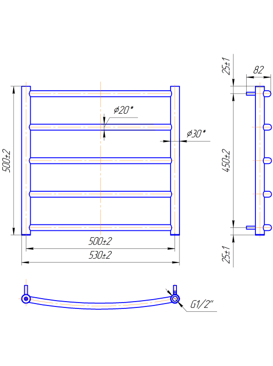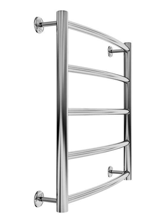 Водяной полотенцесушитель "Марио" Класік 500х530/500. Размеры: высота – 500 мм, ширина – 530 мм, глубина – 105 мм, межосевое расстояние для подключения – 500 мм, диаметр подключения G1/2'. Количество перекладин – 5, вертикальные стойки изготовлены из круглой трубы. Изготовлен из полированной нержавеющей стали без хромирования. Для круглогодичной работы водяную модель можно переоборудовать в комбинированную, установив ТЭН. Рекомендуемая мощность — 120 Вт. Совместимые аксессуары: поворотные полки и навесные крючки для расширения функциональности. Рекомендуется подключать полотенцесушитель с использованием кранов Mario. Гарантия — 50 лет в закрытой системе отопления, 5 лет — в централизованной.