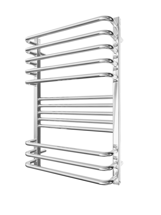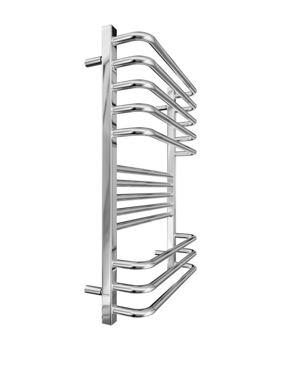Водяной полотенцесушитель INOX Гера-Люкс 770х530/500. Размеры: высота – 800 мм, ширина – 500 мм, глубина – 170 мм, межосевое расстояние для подключения – 470 мм, диаметр подключения G1/2'. Количество перекладин – 13, вертикальные стойки изготовлены из круглой трубы. Изготовлен из полированной нержавеющей стали без хромирования. Для круглогодичной работы водяную модель можно переоборудовать в комбинированную, установив ТЭН. Рекомендуемая мощность — 300 Вт. Совместимые аксессуары: поворотные полки и навесные крючки для расширения функциональности. Рекомендуется подключать полотенцесушитель с использованием кранов Mario. Гарантия — 50 лет в закрытой системе отопления, 5 лет — в централизованной.