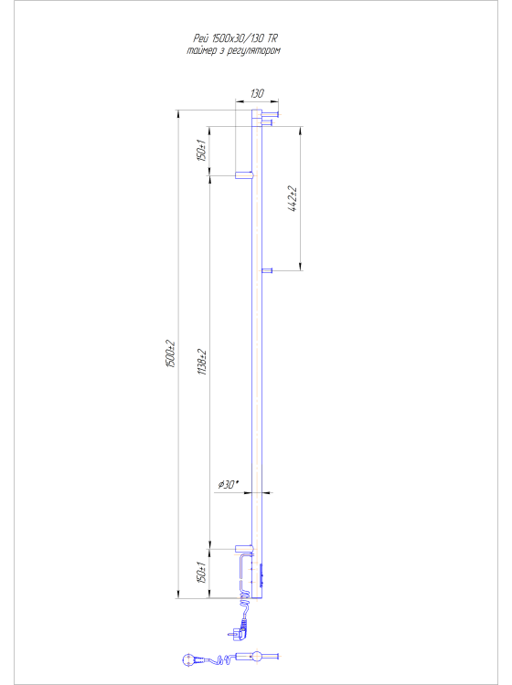 Бытовая электрическая полотенцесушилка Рушникосушка Рей 1500х30/130 електр. TR. Оснащена таймер-регулятором и коннектором для подключения к розетке с любой стороны. Совместима с комплектом скрытого подключения. Имеет 1 перекладин и стойки. Изготовлена из полированной нержавеющей стали без хромирования. Температурные режимы таймер-регулятора: 40°С, 45°С, 50°С. Варианты времени работы: 3, 6 часов и постоянный нагрев. Мощность [3 Вт]. Для удобства использования можно дополнительно оснастить навесными крючками. Гарантия — 60 месяцев.