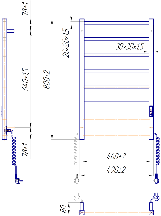 Електросушарка для рушників побутова Токіо-I 800х500/80 TR К.