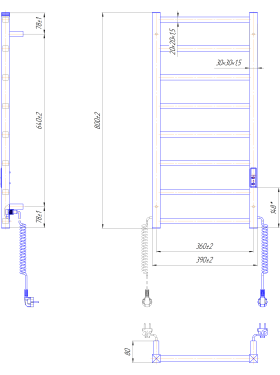 Електросушарка для рушників побутова Токіо-I 800х400/80 TR К.