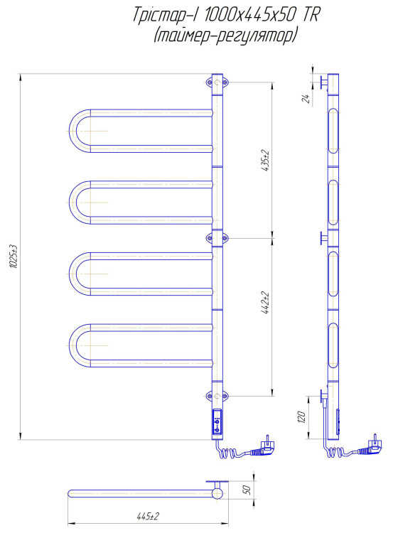Електросушарка для рушників побутова Тристар-I 1000х445/55 TR.