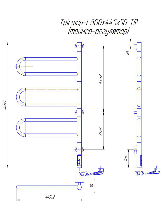 Електросушарка для рушників побутова Тристар-I 800х445/55 TR.